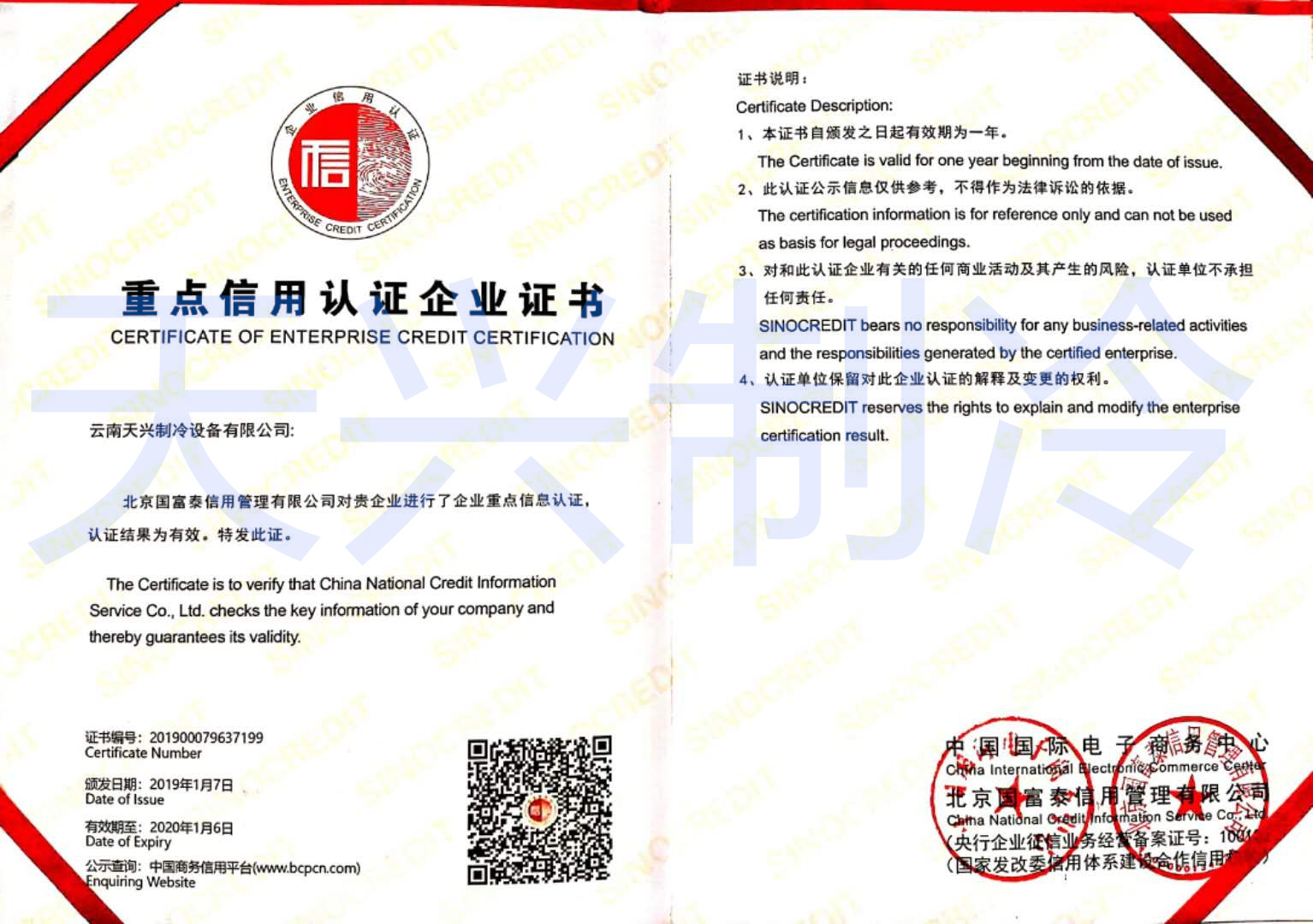 重點(diǎn)信用認(rèn)證企業(yè)證書